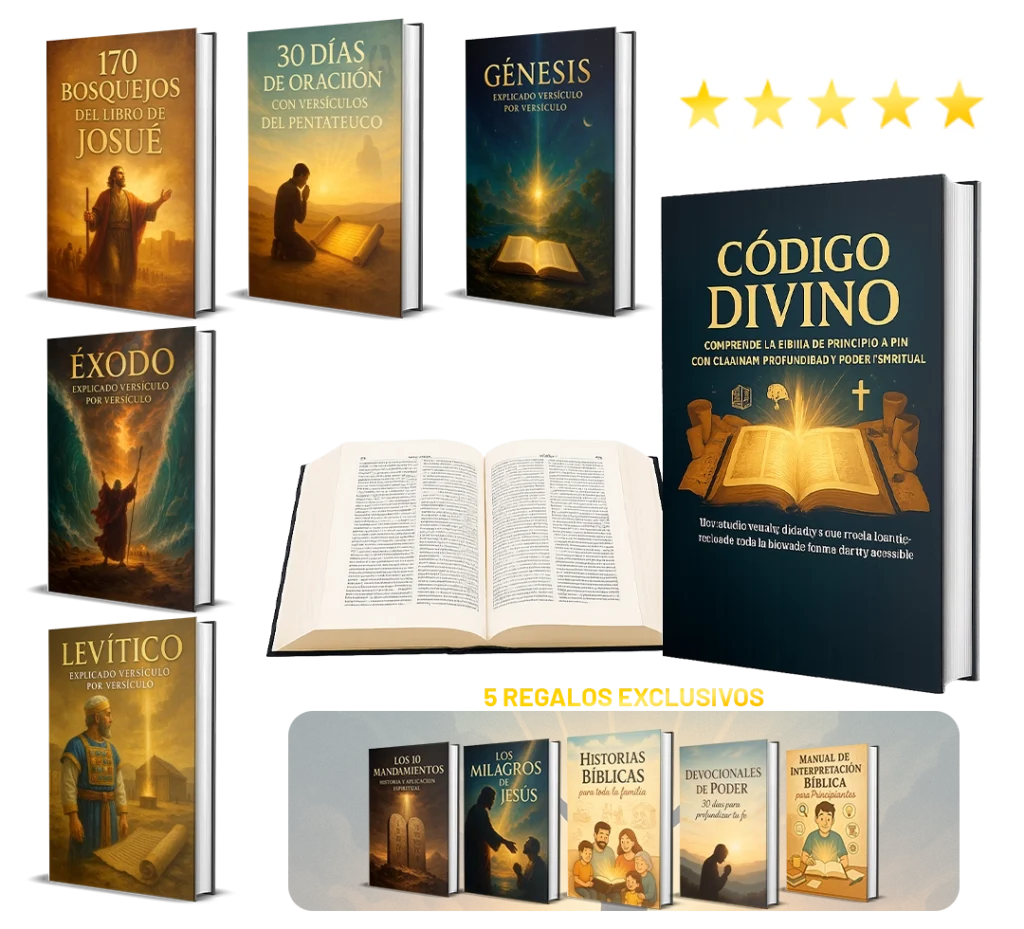 Al adquirir CÓDIGO DIVINO hoy, recibirás totalmente GRATIS estos 5 regalos exclusivos que complementarán tu estudio y crecimiento espiritual: